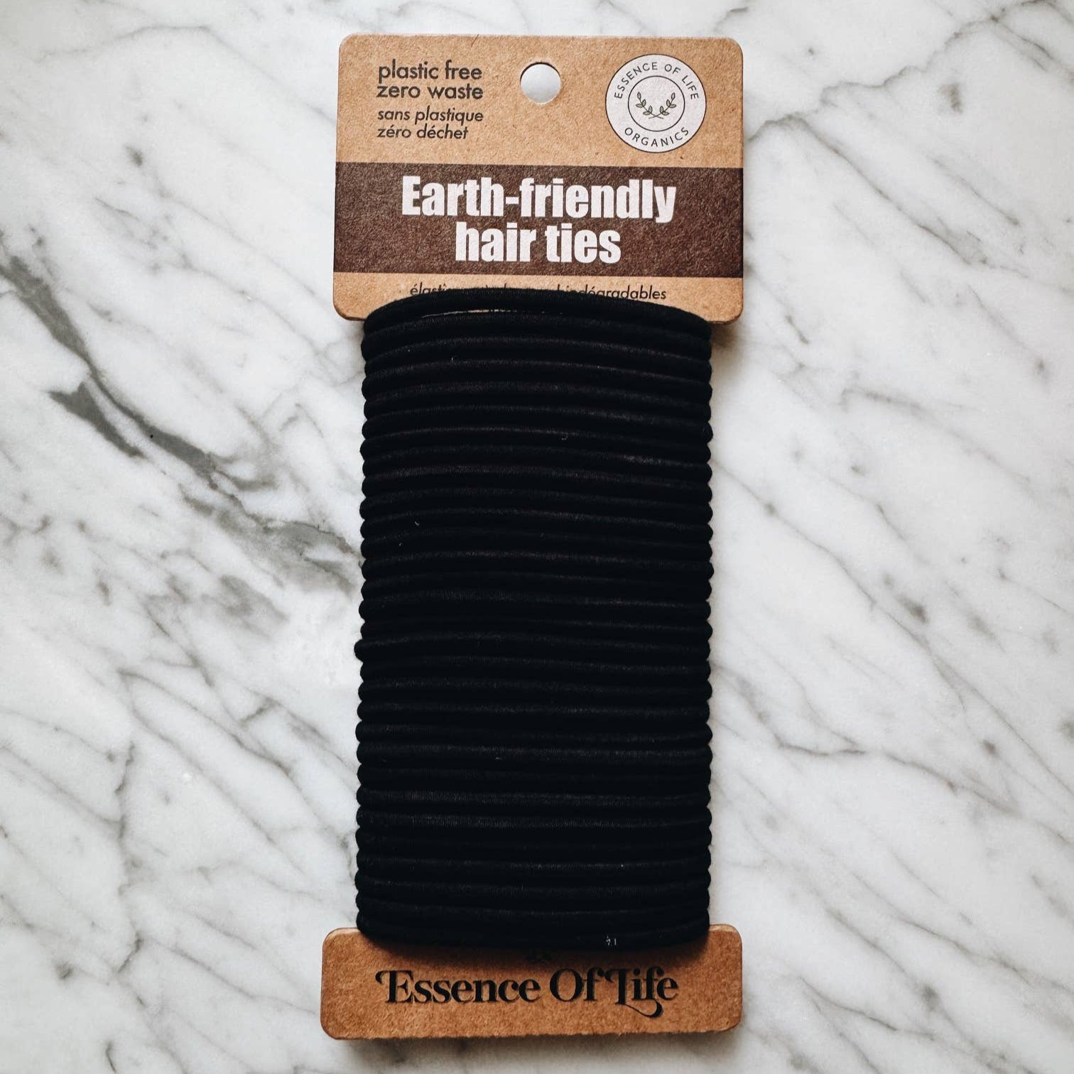 Compostable, plastic-free, zero waste hair ties -- our solution to conventional hair ties made of synthetic materials that contribute to the release of microplastics into our environment. These Essence hair ties are completely plant-based and biodegradable, made from 100% organic cotton and natural tree rubber resin. Easy to use for a great all day hold.